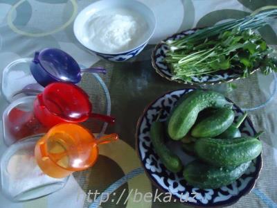 Бодринг ва кўкатлар ювиб, майда тўғралади. Таъбга кўра зираворлар солиб, қатиқ билан аралаштирилади.